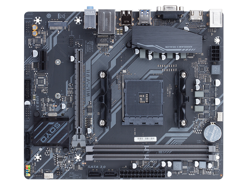 高速M.2接口,顯卡插槽,2條DDR4內存槽,六相供電