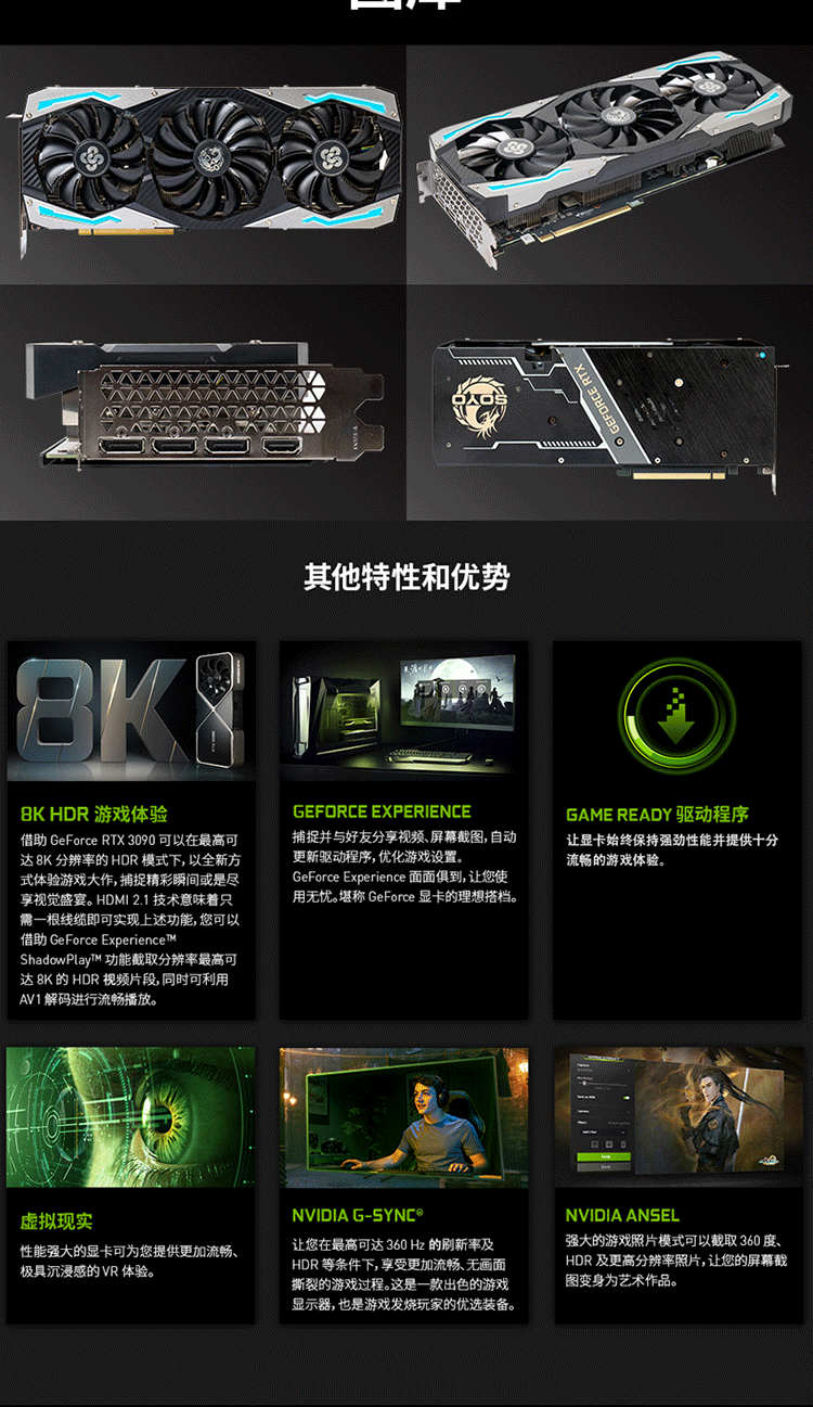 支持Simultaneous Multi-ProjectionVR圖像矯正技術(shù),VRWorks Audio虛擬現(xiàn)實(shí)音頻技術(shù),Ansel截圖功能,PhysX物理加速技術(shù),NVIDIA CUDA,NVIDIA REFLEX,PureVideo HD高清硬件解碼,動(dòng)態(tài)超級(jí)分辨率,MFAA,GeForce 3D Vision,GameWorks™,G-Sync™-Ready,GameStream™-Ready,GeForce ShadowPlay™,GPU Boost™