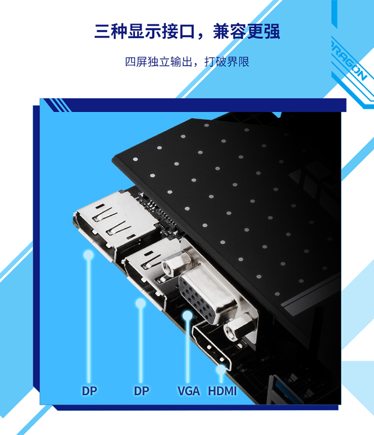 - DP接口2個,HDMI接口1個、VGA接口1個