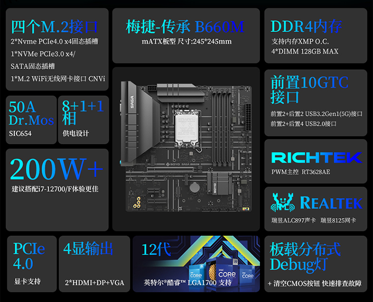 4個(gè)M.2接口(3*M.2硬盤(pán)+1*M.2 CNVi)