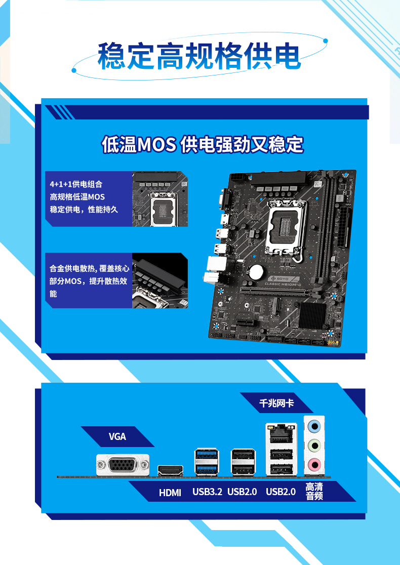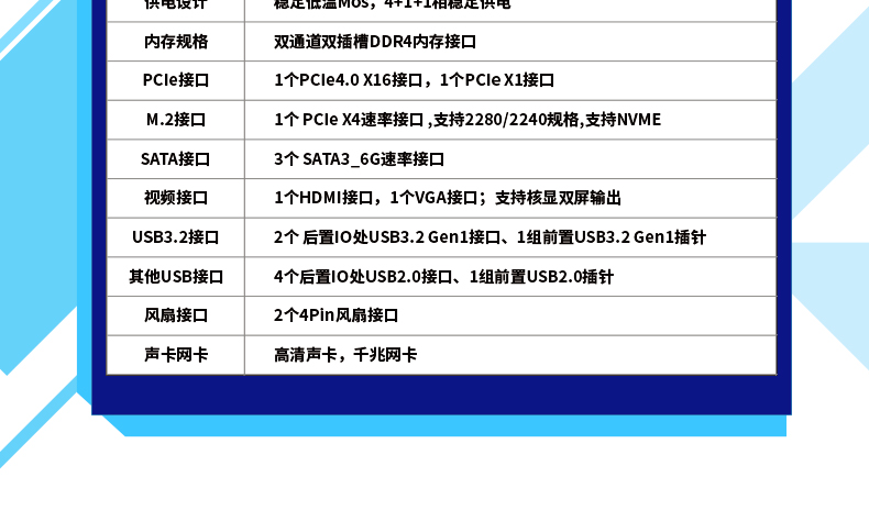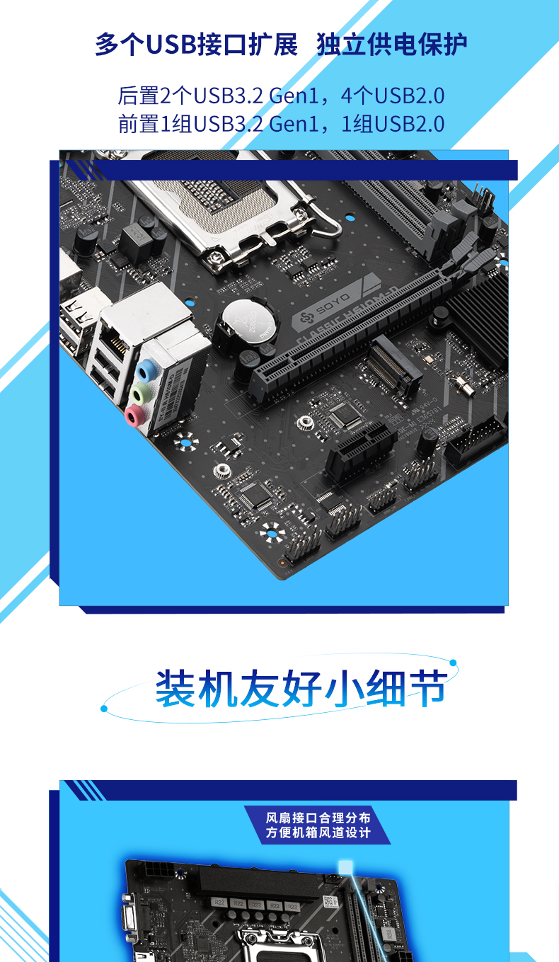 - IO處2個USB3.2 Gen1接口,4個USB2.0接口;前面板USB3.2 Gen1接口1組,前面板USB2.0接口2組